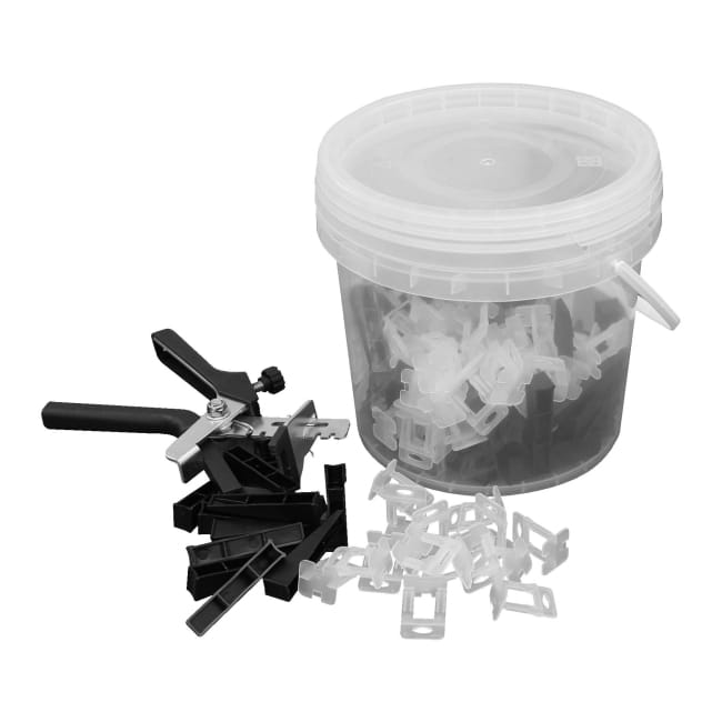 - Informacje dodatkowe: w zestawie: 100x kliny do poziomowania, 100x klipsy dystansowe 2 mm do poziomowana, 1x szczypce