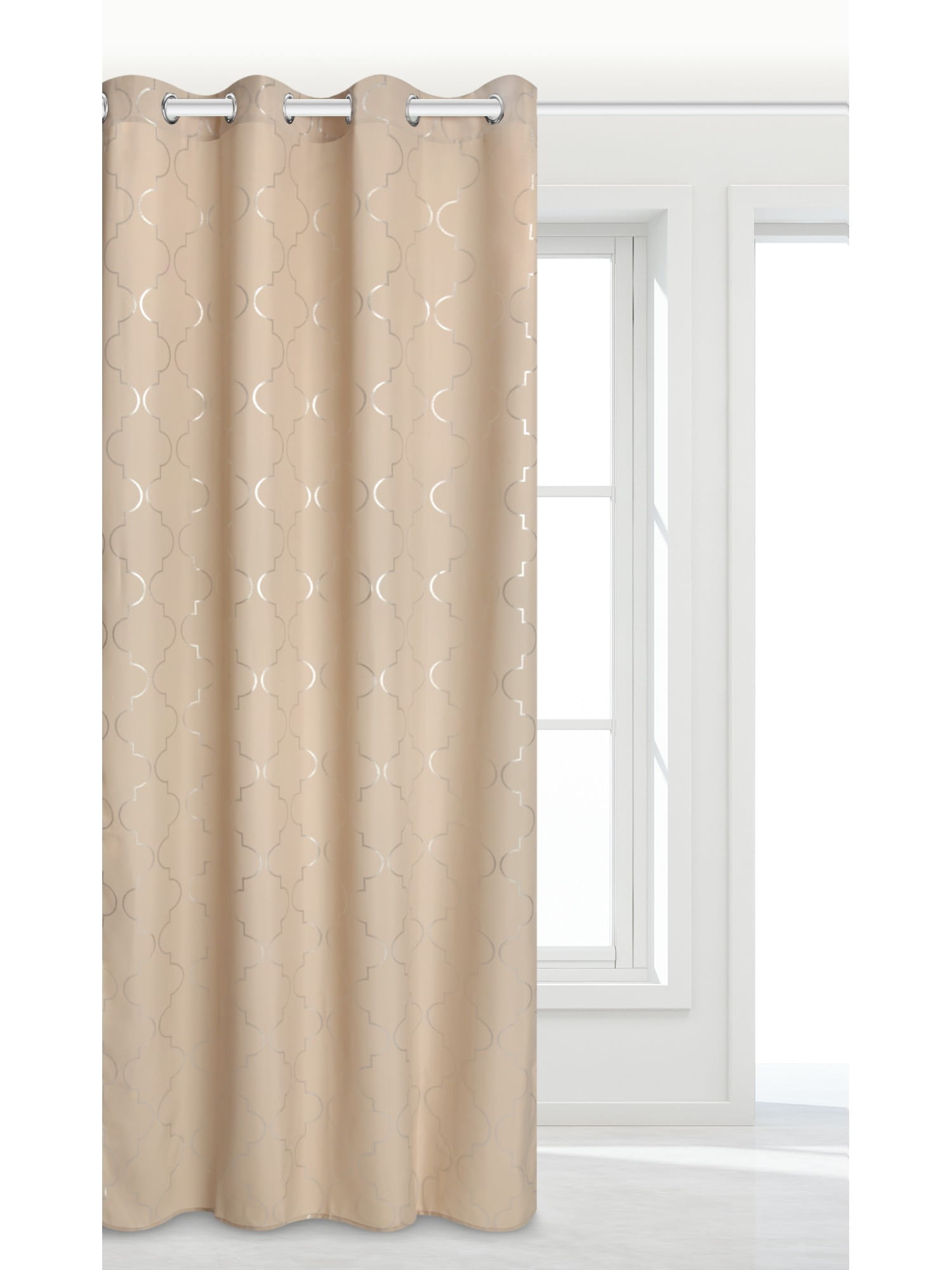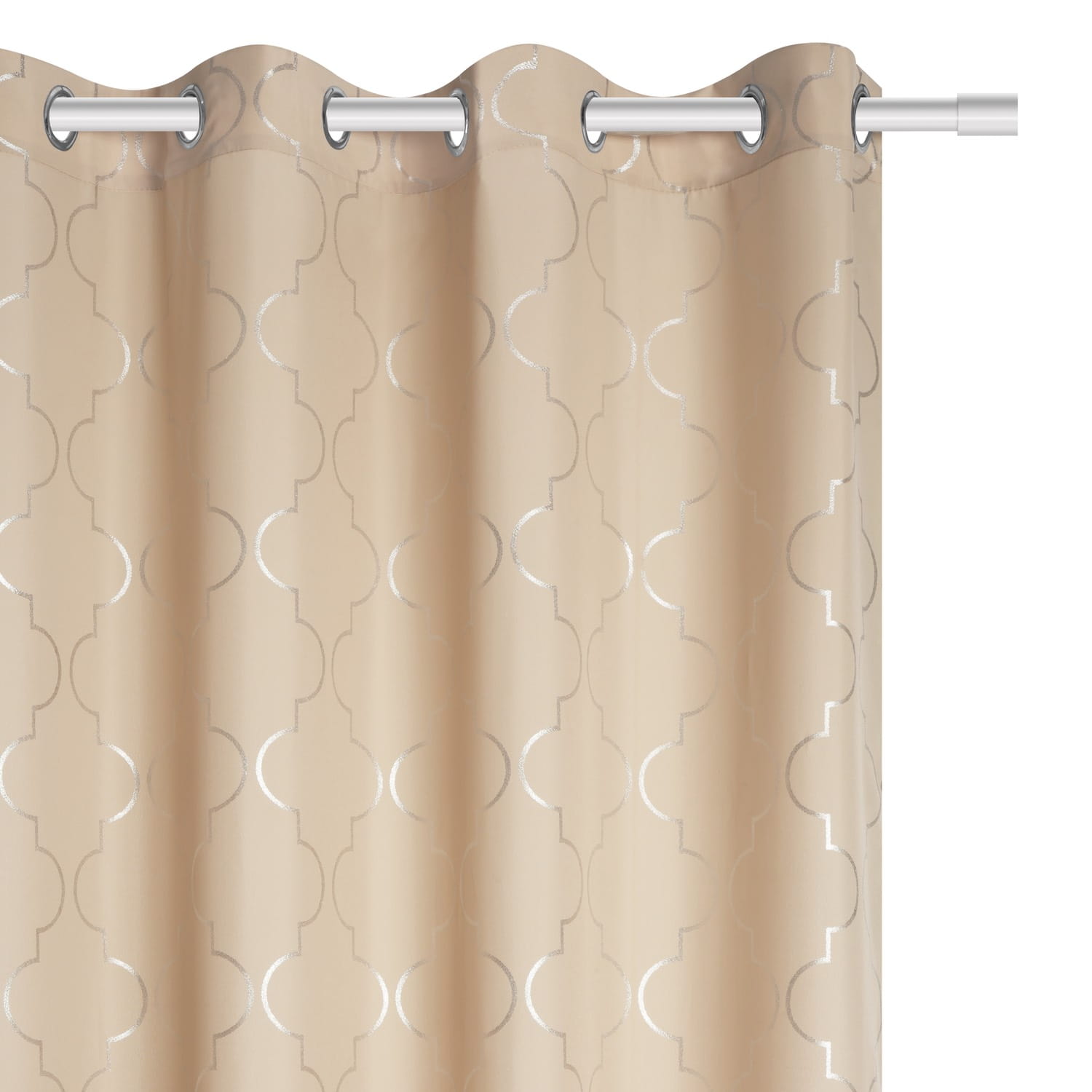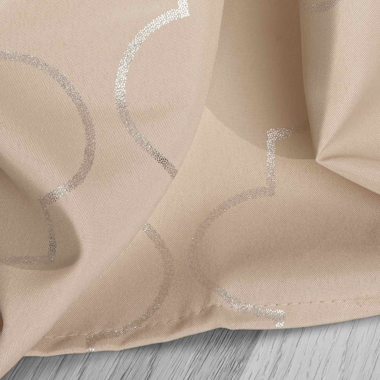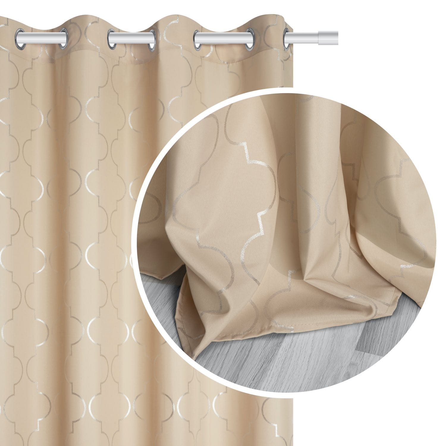 Zasłona Maroko posiada uniwersalną wysokość 250 cm oraz szerokość 140 cm, dzięki czemu idealnie pasuje do większości wnętrz. To doskonała propozycja dla osób, które oczekują subtelnego przyciemnienia. Zasłona gotowa została estetycznie wykonana z gładkiego, matowego materiału składającego się ze 100% poliestru. Przyozdobiona jest pięknym motywem marokańskiej konicznyny, do której możemy dopasować do kompletu poszewki na poduszki. Charakteryzuje się zastosowaniem średniej grubości tkaniny, która pięknie się układa. Mocowana jest na 8 chromowanych przelotkach o średnicy 4 cm, które są bardzo proste w zawieszeniu na karnisz.