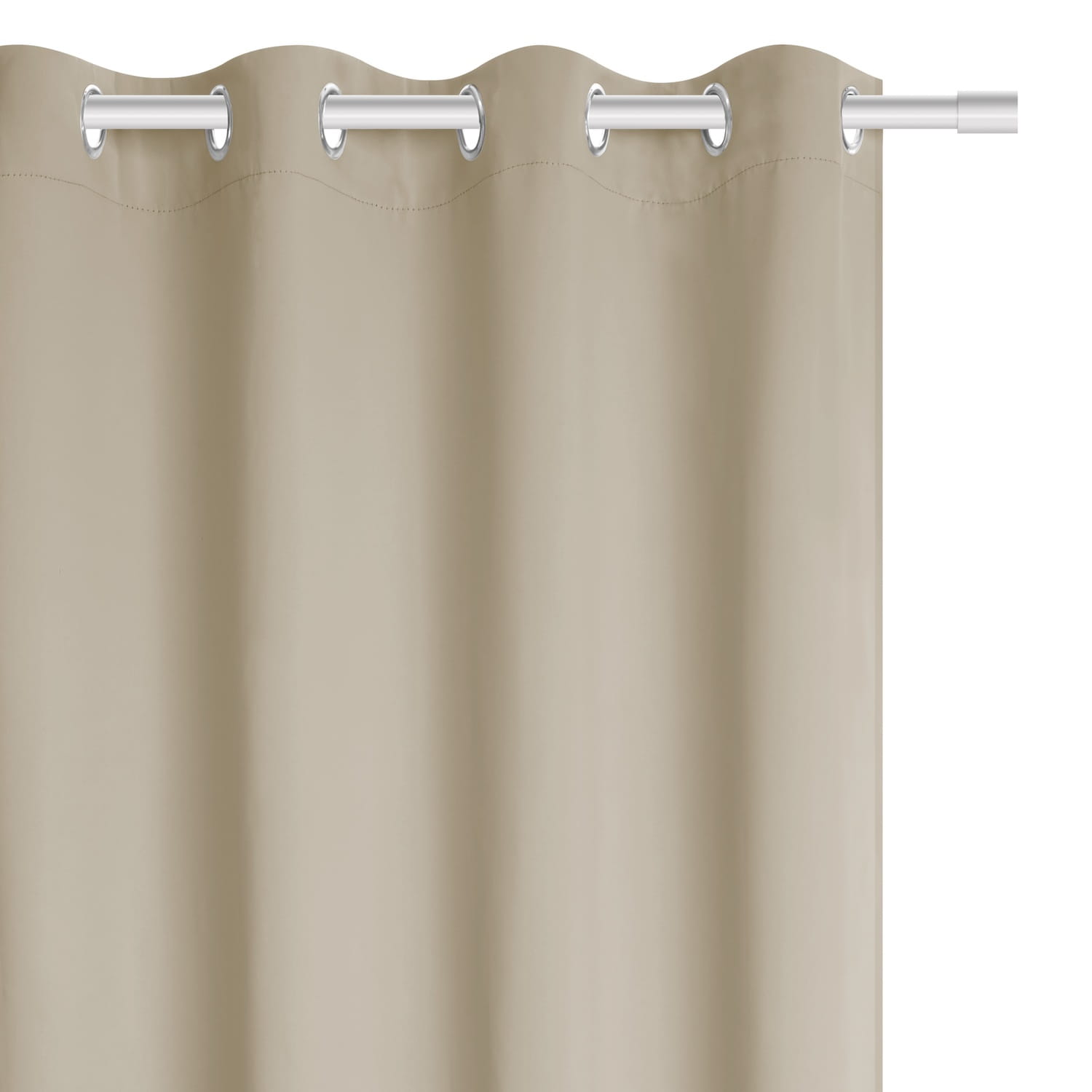 Zasłona zaciemniająca Hold posiada uniwersalną wysokość 250 cm oraz szerokość 140 cm, dzięki czemu idealnie pasuje do większości wnętrz. To doskonała propozycja dla osób, które oczekują mocnego krycia. Zasłona blackout została estetycznie wykonana z gładkiego, matowego materiału składającego się ze 100% poliestru. Charakteryzuje się zastosowaniem grubej tkaniny, która w środkowej warstwie posiada czarną powłokę. Taka konstrukcja gwarantuje całkowite zaciemnienie pomieszczenia. Mocowana jest na 8 chromowanych przelotkach o średnicy 4 cm, które są bardzo proste w zawieszeniu na karnisz.