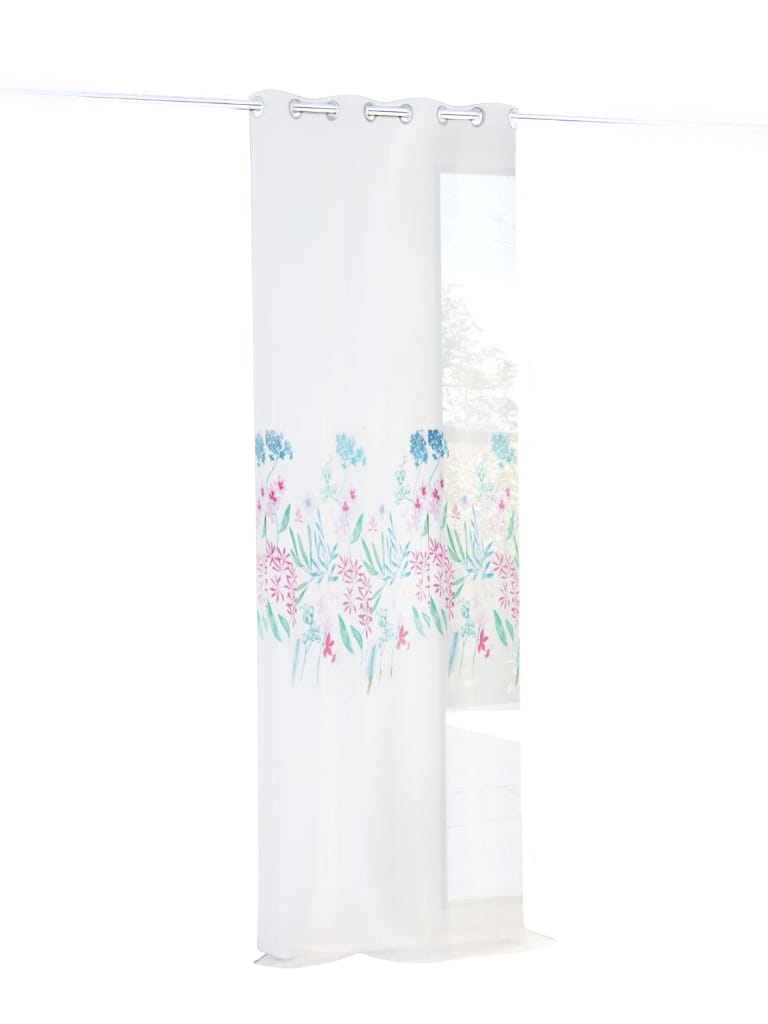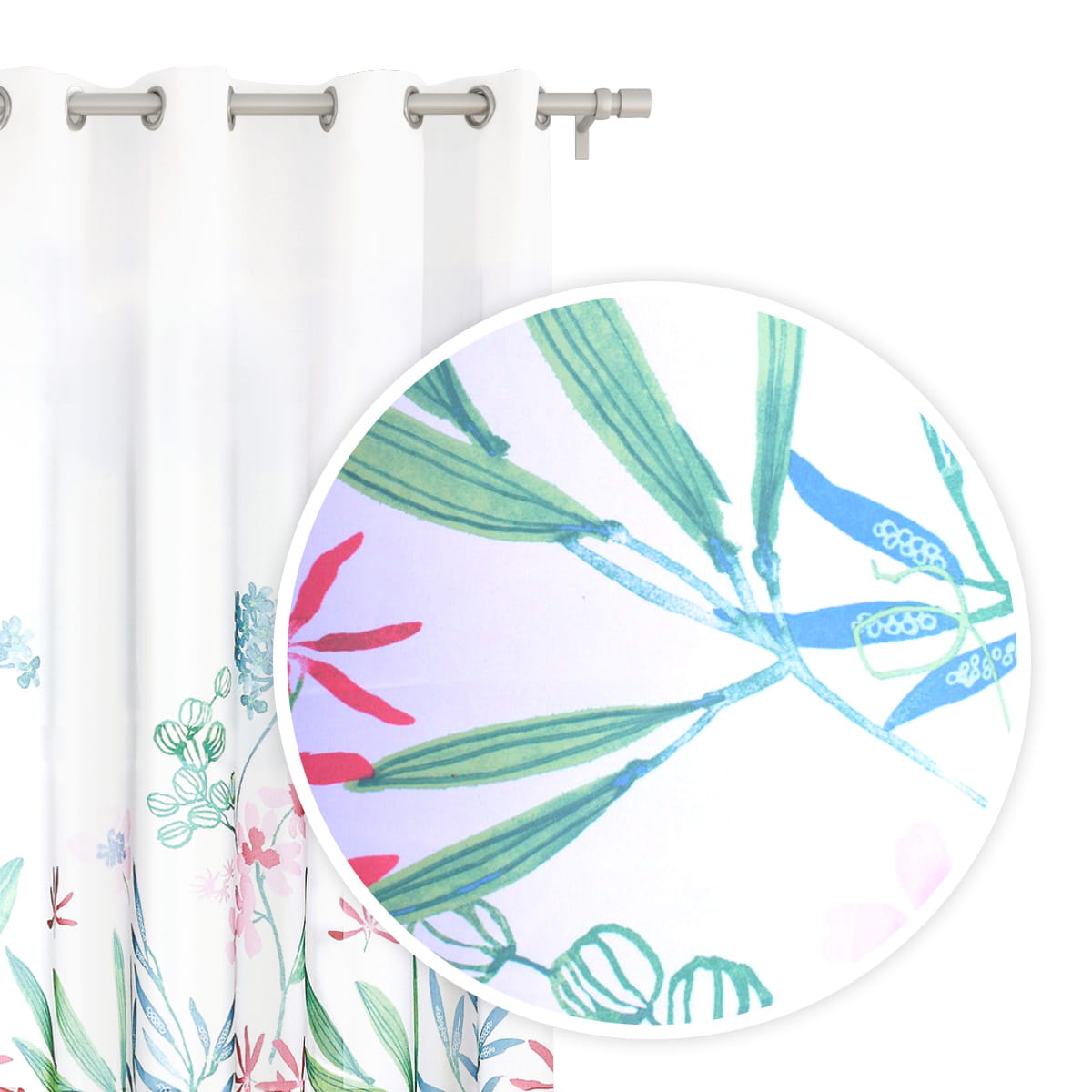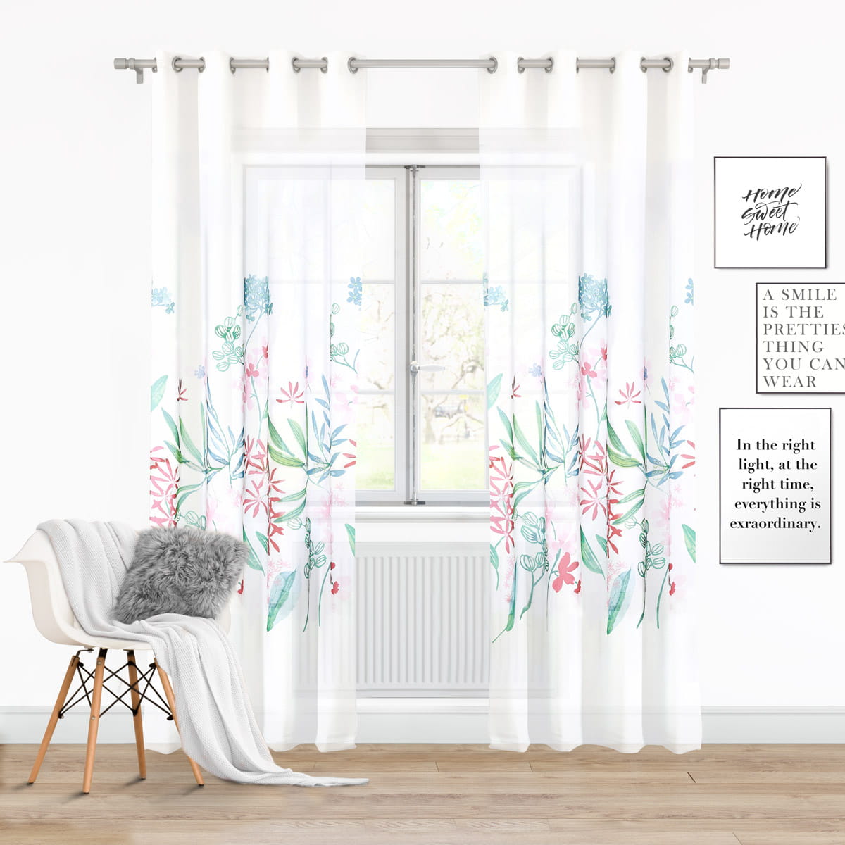 Zasłona Spring posiada uniwersalną wysokość 250 cm oraz szerokość 140 cm, dzięki czemu idealnie pasuje do większości wnętrz. To doskonała propozycja dla osób, które oczekują bardzo subtelnego przyciemnienia. Zasłona gotowa została estetycznie wykonana z gładkiego, cienkiego materiału składającego się ze 100% poliestru. Przyozdobiona jest pięknymi motywami florystycznymi, do których możemy dopasować do kompletu poszewki na poduszki. Charakteryzuje się zastosowaniem cienkiej grubości tkaniny, która pięknie się układa. Mocowana jest na 8 chromowanych przelotkach o średnicy 4 cm, które są bardzo proste w zawieszeniu na karnisz.