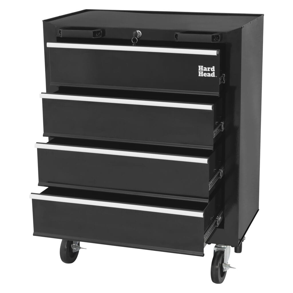 Szafka z czterema szufladami na solidnych kółkach z PVC. Dwa z kółek można zablokować. Wymiary: 61,6 x 33 x 78,5 cm.