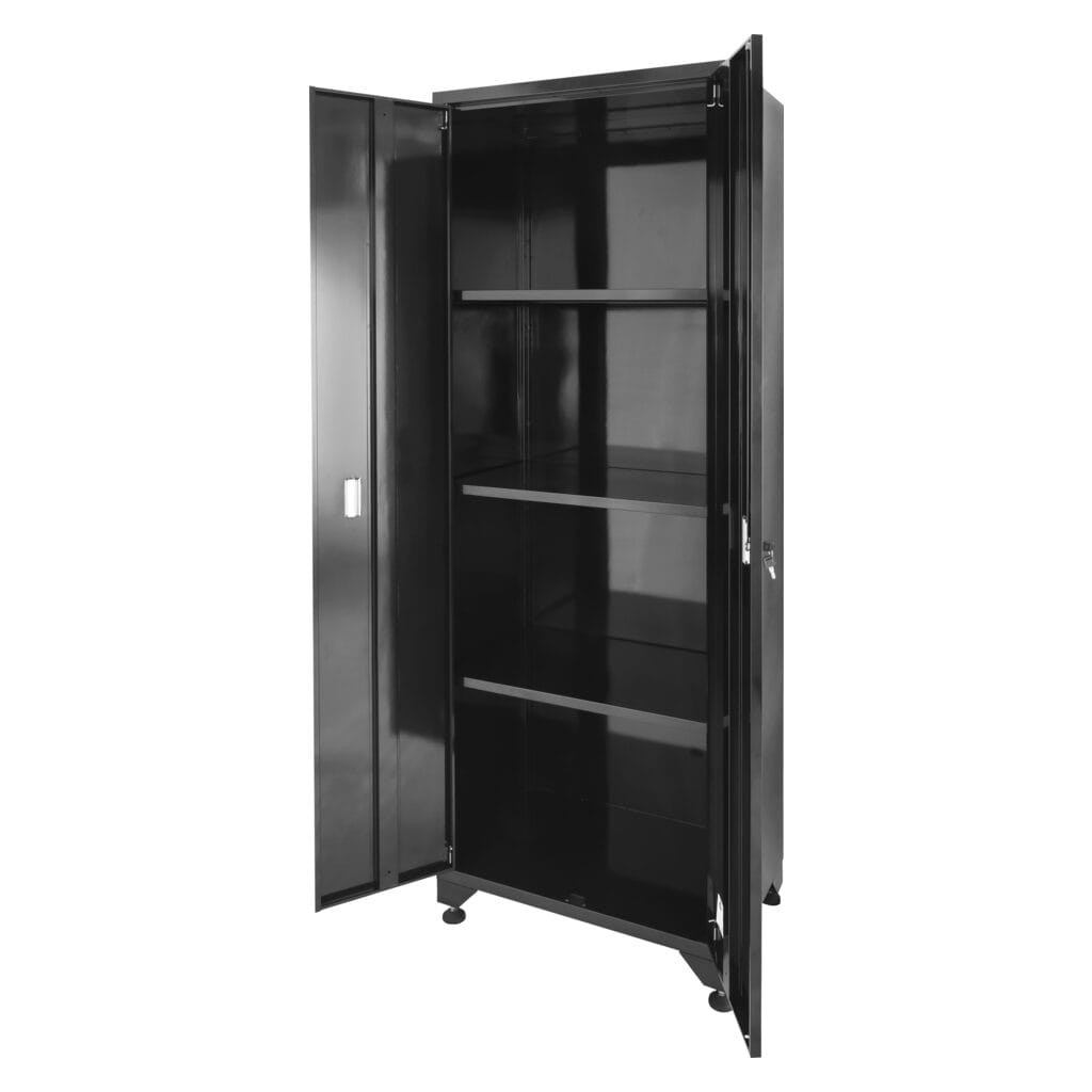 Wysoka szafka z trzema półkami w środku. Regulowane nogi (maks. wysokość 35 mm). Wymiary: 76 x 50 x 205 cm.